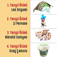 Led Origami ve Zı Pervane etkinliklerini uygulayan öğrenci STEM hakkında bilgi ve beceri sahibi olur. Bu iki etkinlik sonunda birinci STEM projesini yapar.